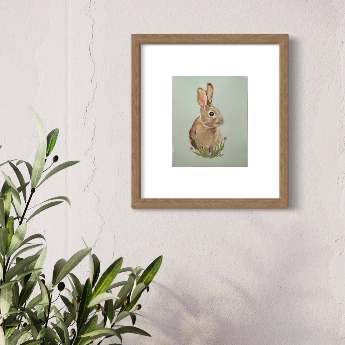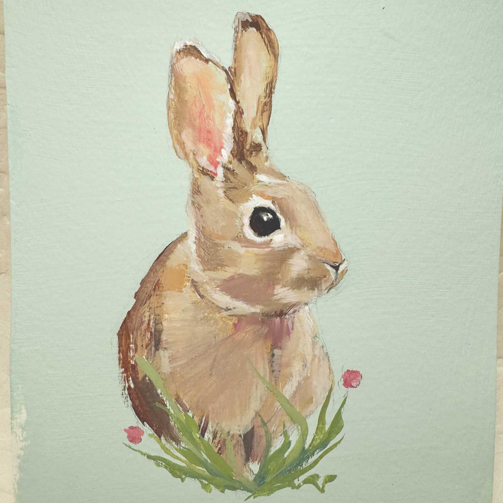 Bunny with Tiny Flowers | 6″ x 7.25″ | Gouache Painting