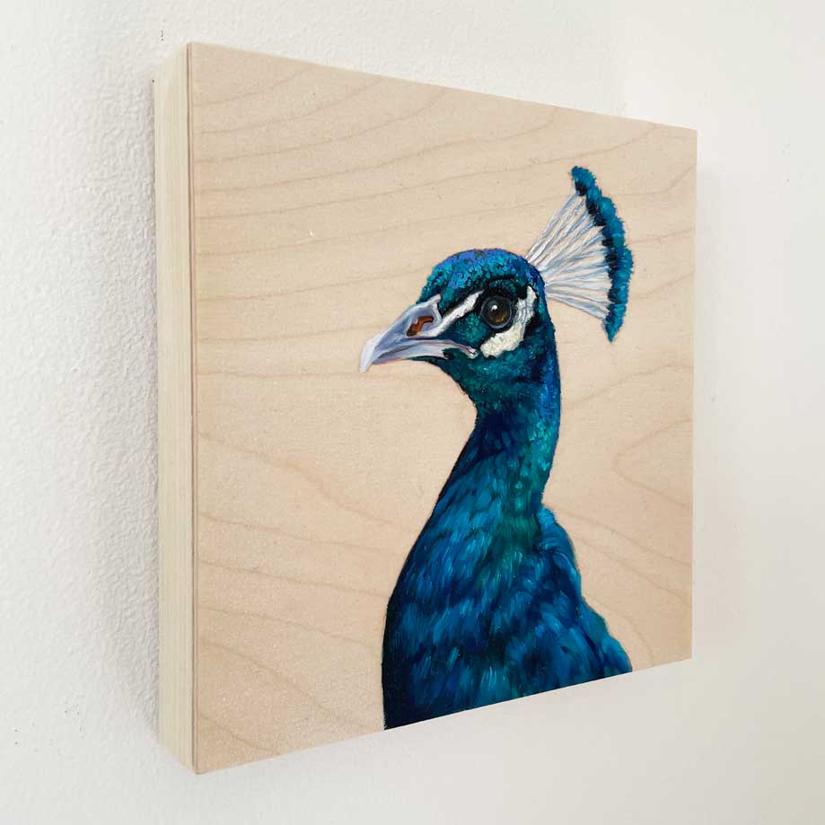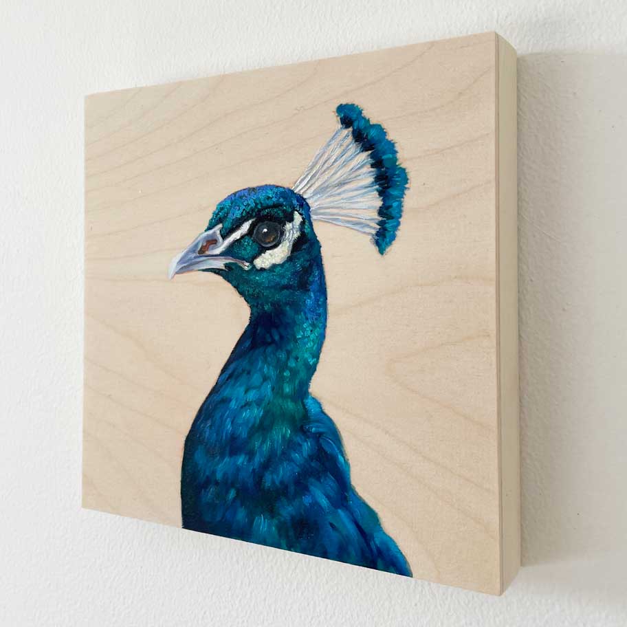 Indian Peacock | 6″ x 6″ | Oil on Wood Panel