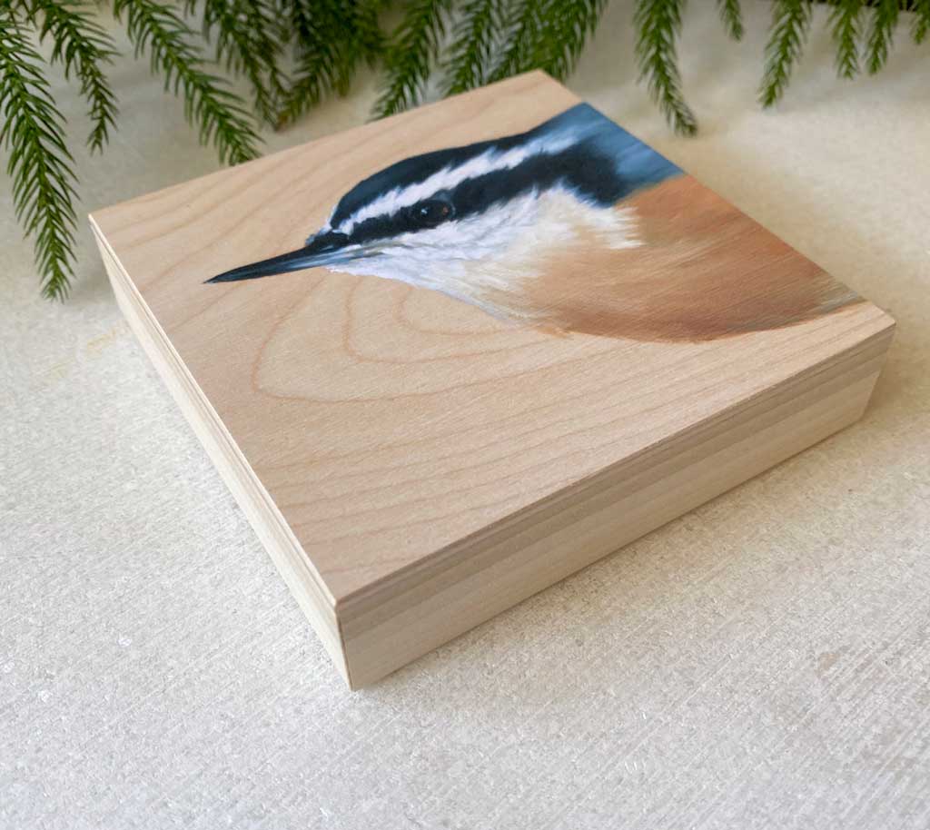 Red-Breasted Nuthatch – Bird Art Print on Wood